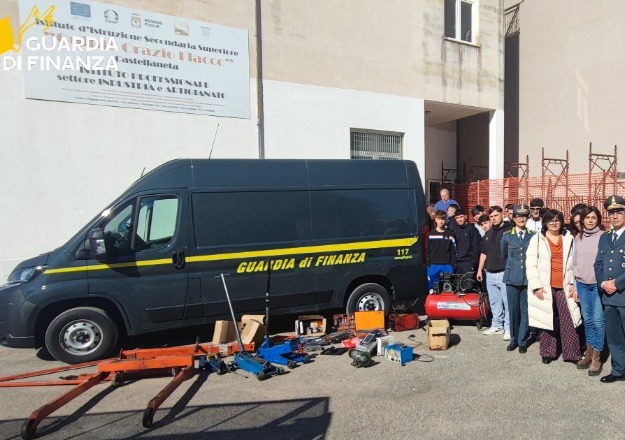 Castellaneta: "I finanzieri donano attrezzature meccaniche confiscate all'Ist. Orazio Flacco." Just tv